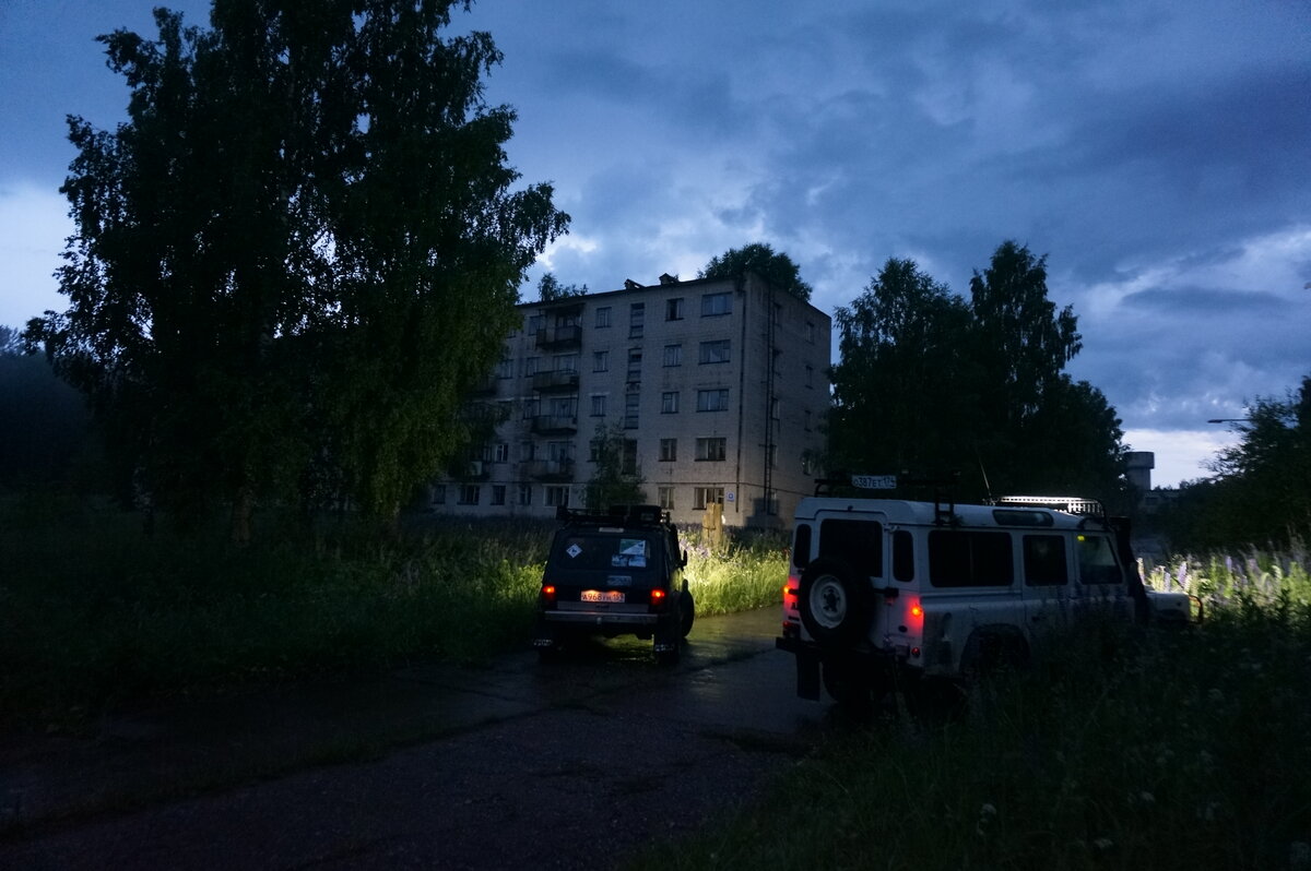 Когда унылые болотистые колеи в лесу, по которым мы с переменным успехом ползли в сторону объекта внезапно выпрыгнули на растрескавшуюся бетонку с пробивающейся травой, сон внезапно испарился, а я почувствовал давно забытый азарт поисковика. В свое время мы много накатали по военному техногену, бродили по пустым ангарам автобатов, спускались в подземные КП, топтали далекие километры трасс в сторону таких манящих названиями городков - ЗАТО Звездный, Первомайский, Ясный, Локомотивный, Свободный... Давно забытое чувство поиска и азарта снова вернулось, испарив сон, как испаряется мороженое на раскаленном на солнце бетоне. Под колесами запрыгали стыки плит, а стрелка на карте все ближе и ближе ползла к точке назначения - бывшему городку ракетчиков. Мы уже близко! Вот мелькнул бывший КПП, и через какое-то время, показались заросшие травой здания. Дорога дальше была перегорожена тросом, а в доме горело одно единственное окно первого этажа - там явно кто-то был... Оставляем машины, а сами а