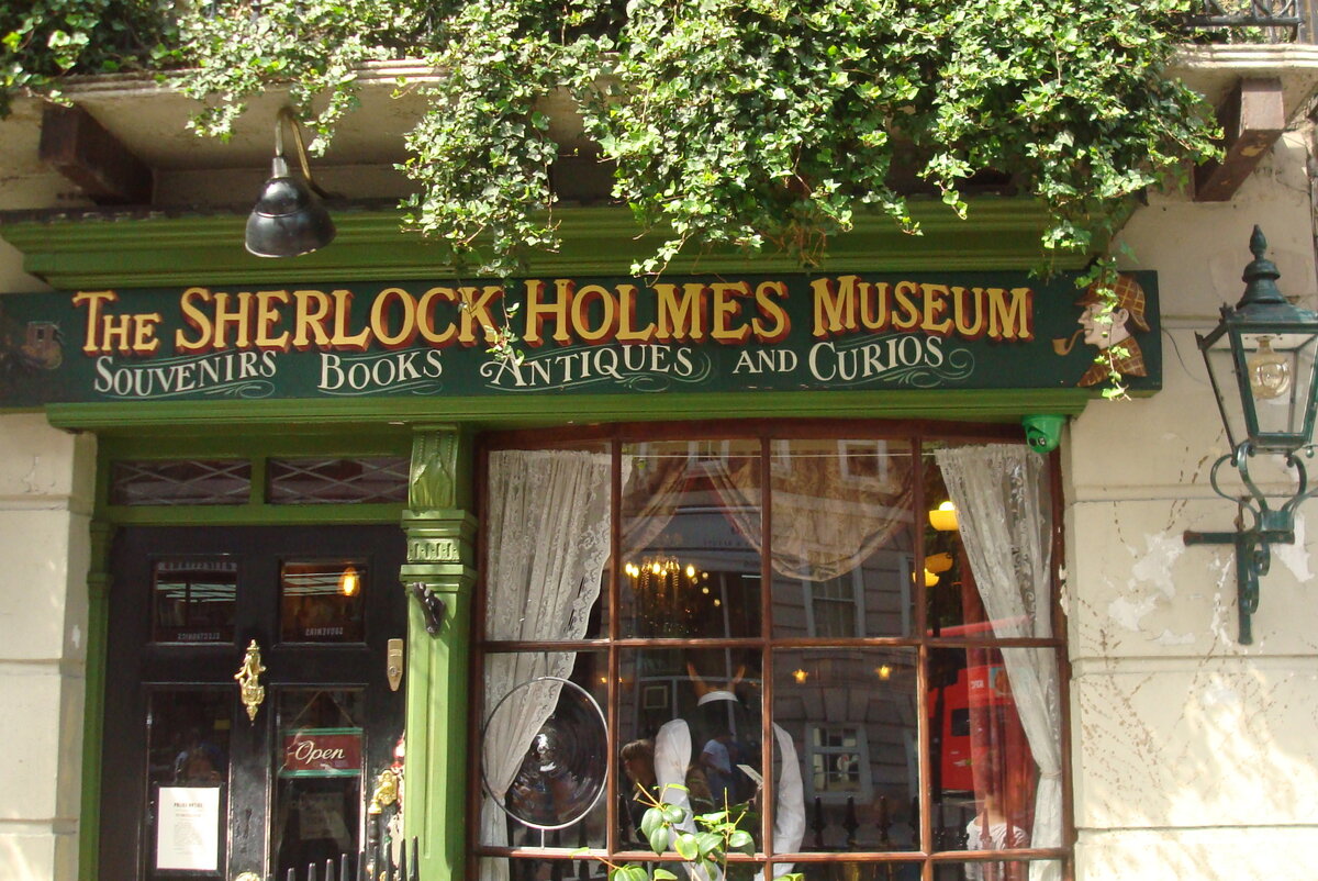 Оказавшись в Лондоне, я не могла проехать мимо станции метро «Baker street». Напротив выхода – памятник великому сыщику. Я вознамерилась его сфотографировать, а рядом болтала группа темнокожих тинэйджеров. Девушка, заметив меня, предложила друзьям отойти в сторону, а один из подростков с удивлением покосился на памятник: «Кто это вообще, и что тут фотографировать?» Удивительно осознавать, что сейчас у каждого, благодаря интернету и youtube, свой мир со своими героями. Конечно, мы пошли к дому 221b. Здесь сейчас находится музей великого сыщика, но, кроме адреса, ничего общего с Холмсом и Конан-Дойлем это место не имеет. Разве что было интересно заглянуть в сувенирную лавку рядом с музеем. Как вам прихватка с Холмсом? А фото Ливанова на стене? Бесплатное и не менее атмосферное место, имеющее отношение к Холмсу и Конан-Дойлю, находится по другому адресу. Паб «The Sherlock Holmеs». В создании его интерьеров участвовали потомки Артура Конан-Дойля, на втором этаже стоит гостиная Холмс