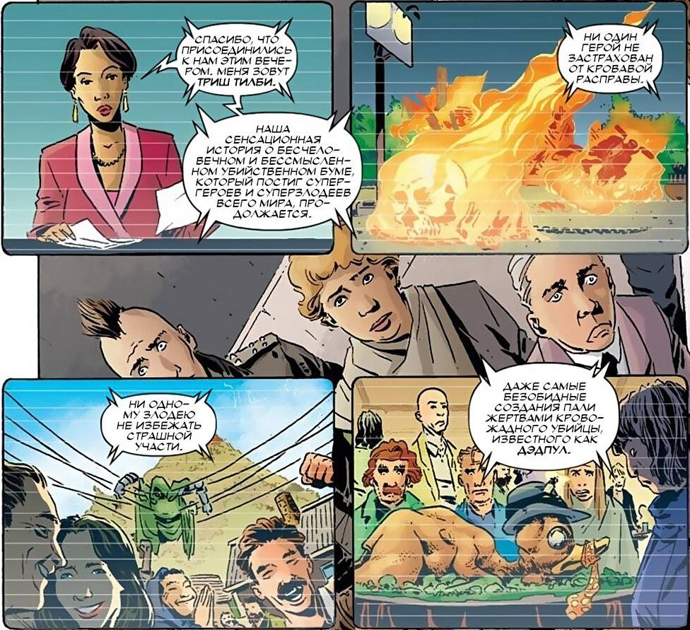 С этого момента Дэдпул начинает охоту на всех супергероев и ни кто не в силах его освободить. В новостях сообщают о череде убийств среди супер героев. В списке погибших числятся Призрачный гонщик, Уэйд подстроил аварию на дороге, повешенный Доктор Дум на электропроводах рядом с жилыми домами, даже безобидный Говард Утка был зажарен на блюде, безжалостным Дэдпулом. Чёрная пантера, Тигра, Железный кулак, все они мертвы, так же сообщается о смерти Хэнка Пима в своей лаборатории и исчезновении его частиц уменьшения. Позже Человек-Паук принимает бой с Дэдпулом в центре города, среди большого количества мирных граждан, но терпит поражение от пули Уэйда. Дэдпул знал что убивает своих друзей, но он не мог пойти против воли голоса, который твердил в его голове. Настало время заняться супергероями посерьёзнее и Уэйд отправился на базу Мстителей, что бы поставить большую точку на их существовании. Но как подобраться к героям такого уровня, тем более что каждый славился неимоверной силой и суперсп