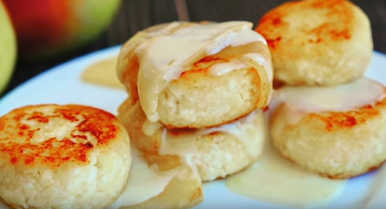 Очень вкусные сырники в сливочном сиропе. Легкие и нежные, вкусные и сытные, наверняка, такие сырники станут отличным началом дня. Готовим... Продукты: Творог - 500 грамм Яйцо - 1 штука Ваниль Соль - щепотка Сахар - 4 столовые ложки Манная крупа - 75 грамм Заливка: Сливки 33% - 500 миллилитров ( или домашнюю сметану) Сахар - 80 грамм Творог, конечно, лучше брать максимальной жирности. Так же творог должен быть сухим. Если у вас влажный творог, отожмите его через марлю. В творог добавить яйцо, ваниль, сахар, соль, манку. Перемешать и оставить на 15 минут. Для приготовления заливки, в сливки всыпать сахар и поставить на огонь. Варить до закипания, при помешивании. Как только смесь закипит, уменьшить огонь и варить до, того как смесь поменяет цвет. Заливка должна стать желтовато молочного цвета. Примерное время варки - 10 минут. Стол припылить мукой, выложить тесто и сформировать колбаску. Нарезать на штучные сырники. Немного утрамбовать сырники. Обжарить на сковороде с маслом с дву
