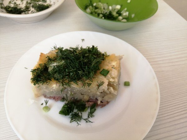 Добрый день! Наверняка, многим знаком подобный рецепт. Когда не знаю что приготовить, но хочется что-то мясного и питательного - всегда готовлю мясо под шубой. Всего 4 ингредиента!!! Вам обязательно понравится. Потребуется: Фарш мясной - 400-500 гр (мясо может быть любое) Картофель - 4-5шт (средние клубни) Лук репчатый - 2 головки Соль, перец - по вкусу Майонез - по вкусу Приготовление: 1. Фарш посолить, поперчить. Тонким слоем выкладываем в форму. (я в форму стелю фольгу, но это не обязательно) 2. Лук нарезаем полукольцами. Выкладываем тонким слоем поверх фарша. 3. Трем на крупной терке картофель, немного подсолим - примерно 1/2-1ч.л. Выкладываем следующим слоем поверх лука. 4. Покрываем картофель майонезом - тонким слоем, но чтобы весь картофель был покрыт! Т.к. не покрытый при жарке подгорит и местами будут угольки:) 5. Отправляем в разогретую духовку до 180-200гр на 40-45 мин. Выпекаем до готовности! 6. Готовое блюдо можно посыпать свежей зеленью. ПРИЯТНОГО АППЕТИТА! Подписывайтесь