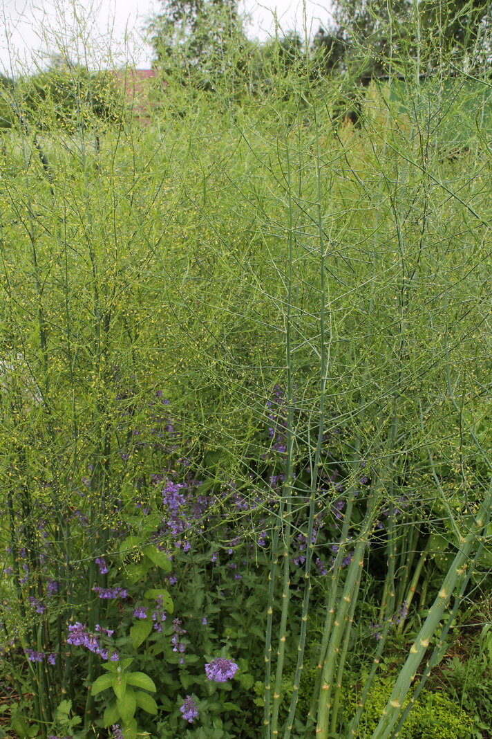 Хорошо помню зеленые пушистые веточки, которые добавляли в букеты к гладиолусам, которые мы тащили в школу 1 сентября. Тогда я понятия не имела, что это за зеленые веники. Да и много лет спустя даже не подозревала, что это та самая загадочная деликатесная спаржа, которой питались неведомые аристократы с Запада. Но однажды мне попались семена в одном из сетевых магазинов, и я решила посадить этот деликатес на своих грядках. К моему искреннему удивлению из 10 семян взошло и выросло целых 6 штук! Для моих кривых ручек это невероятно результативный опыт. Спаржа подрастала на балконе, потом переехала на огород, и года три она решала как ей поступить: помучиться еще, или уже упокоиться. Наконец, она разрослась и стала пушистой зеленой красавицей, даже и без гладиолусов. Я каждый год усердно засыпала ее сверху песком, чтобы отбелить молодые стебли для еды, но ни разу так и не удалось поделикатесничать, она всегда успевала перерасти и стать очень жесткой. В зиму она у меня так и уходила зелен