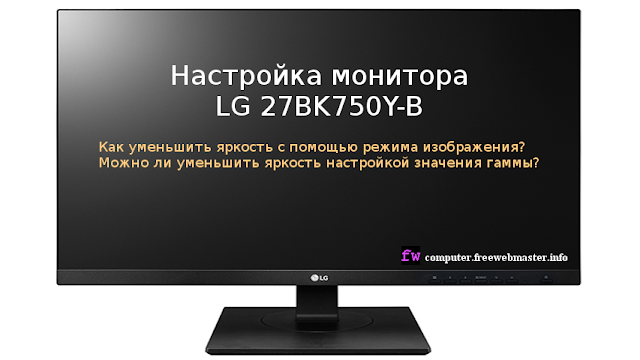 Настройка монитора LG 27BK750Y-B Если у монитора слишком высокая яркость на минимальном значении, вам придется настраивать дополнительные опции и искать другие возможности для комфортной работы. Позволят ли, пользовательские настройки монитора уменьшить яркость настройкой режима изображения? Можно ли уменьшить яркость настройкой значения гаммы?