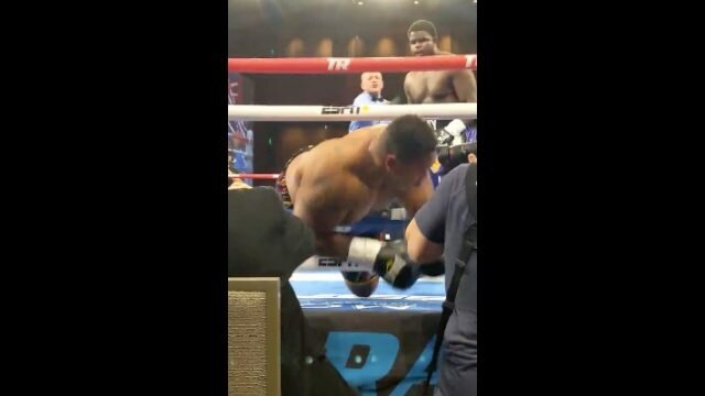 Боксер -тяжеловес красиво вылетел за пределы ринга во время боя (видео)