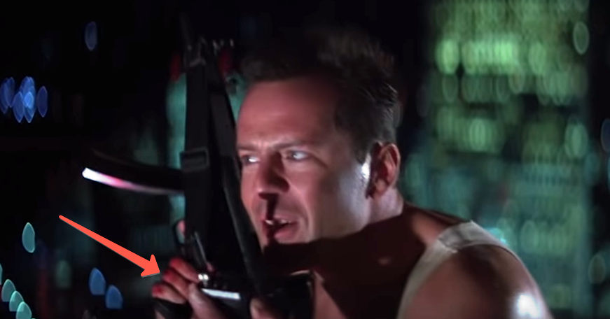 Лично я пересматриваю этот кино шедевр перед каждым Новым годом, так получилось что “Крепкий орешек” ассоциируется у меня с этим светлым праздником. Ну да ладно, не буду сильно отвлекаться от основной темы статьи, поехали. Ляп № 1 – автомат Когда Джон Маклейн бегает по крыше и ведет перестрелку с террористами, его автомат оказывается то в правой, то в левой руке. Сразу оговорюсь, переложить оружие в другую руку он мог, но не в том моменте, который запечатлён на слайдах. Да и сцен таких в фильме (когда оружие прыгает с одной руки в другую) более чем достаточно. Ляп № 2 – магические буквы Когда Брюс Уиллис выбирает на экране имя своей жены, одна буква магическим образом меняется (буква Е меняется на А), вы можете наглядно это увидеть сравнив первый и второй слайд. Почему так происходит не понятно, но факт остается фактом. Ляп № 3 – дублер Помните момент, когда наш полицейский полез под вентилятор? Так вот под этим самым вентилятором был совсем не Брюс Уиллис, а его дублер. Если присмотре