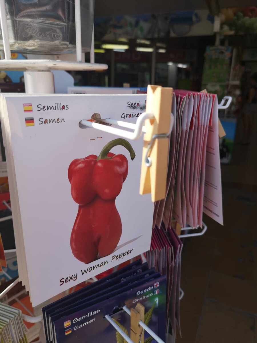 Практически каждый турист привозит с отпуска какой-нибудь сувенир. Кто-то что-то полезное и функциональное, но при этом передающее колорит той страны, в которой отдыхал, другой магнитик на холодильник. В этом году мы отдыхали в Испании на острове Майорка. Прогуливаясь до моря мимо сувенирных лавок, мое внимание привлекли помимо стандартных сувениров следующие: Семена, из которых вырастают овощи необычной формы. Вариантов подобных семян несколько. Выбрала самый приличный) Семена, из которых вырастают цветы необычной формы. А как вам такой цветочек? Стоимость одного пакетика с семенами -2.5 евро. Сангрия в красивых бутылочках Есть бутылки и с головой быка, и с испанской шляпой, и в виде танцующей фламенко девушки и в форме туфельки. Стоимость на фото. Вот такие вот необычные, немного жутковатые сувениры для мужчин, но наверное, и они находят своих покупателей) Сладости в виде испанской паэльи или пиццы Кстати, очень вкусные! Есть также и в виде конусов и в различных других конфигу