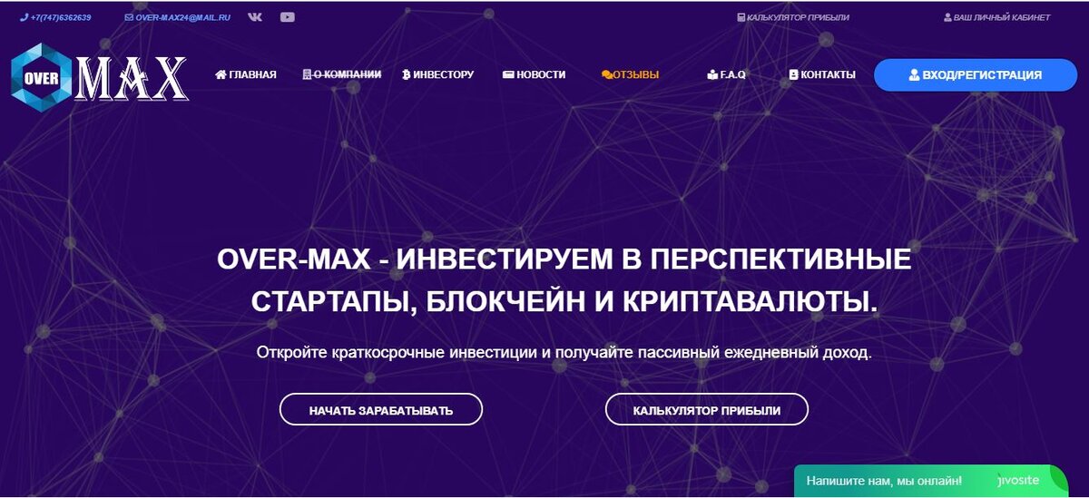 Over-Max — компания, которая обещает пользователем большой доход за счет вложения денег в инвестиции. Предлагает несколько тарифных планов с максимальной ставкой 9% в сутки. Но, с этой площадкой явно что-то не так. Что именно — сейчас узнаем. Разоблачение проекта Over-Max Начнем с того, что сайт не оптимизирован. Дизайн кривой, буквы куда-то расходятся. Часть текста размещена по-диагонали, что вызывает неудобства при чтении. Странно, что такая серьезная компания безответственно подошла к этому вопросу. Какие инвестиции, если даже сайт нормально не смогли сделать? Чтобы вызвать доверие пользователей, специалисты из Over-Max разместили информацию о гарантиях. Так пользователю обещают выплачивать прибыль за счет привлеченных на платформу средств из других источников, включая собственные инвестиции. Что за странные гарантии? Еще есть статистика. Но, выглядит она явно нарисованной. Но, администрации нужны хотя бы эти данные, чтобы привлечь новых пользователей. Компания Over-Max предлагает и