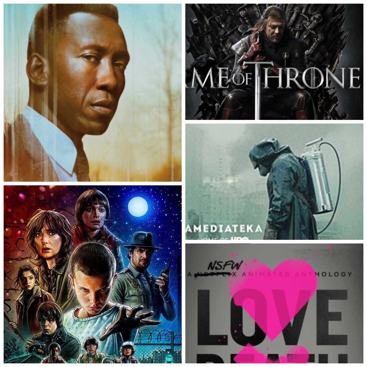 5 . Пятое место почетно и заслуженно занимает "Игра Престолов". Будораживший 6 сезонов миллионы людей и сбавивший накал в последних двух, сериал навсегда останется в сердцах поклонников по всему Миру. 4 . Необычный, экспериментальный, бессюжетный, сценарий которого написан роботом мультипликационный сериал, название которого "Любовь, Смерть и Роботы" удивил своей необыкновенной жесткостью, рисовкой и сериями заставляющими задуматься о многом. 3 . "Очень странные дела", увлекательный сериал пришелся по душе многим. Действия разворачиваются в провинциальном городке. Фантастика заправленная Ужасами, вот как можно описать это творение Netflix. 2 . "Настоящий детектив", придется по душе поклонникам "Менталиста","Семь" и "Шерлока", отличный криминальный сюжет, необычные повороты заставят покрыться мурашками все ваше тело. 1 . На этом месте не мог не оказаться "Чернобыль". Сериалы показавший катастрофу с другой стороны и продемонстрировавший насколько простым людям пришлось тяжело в то вр