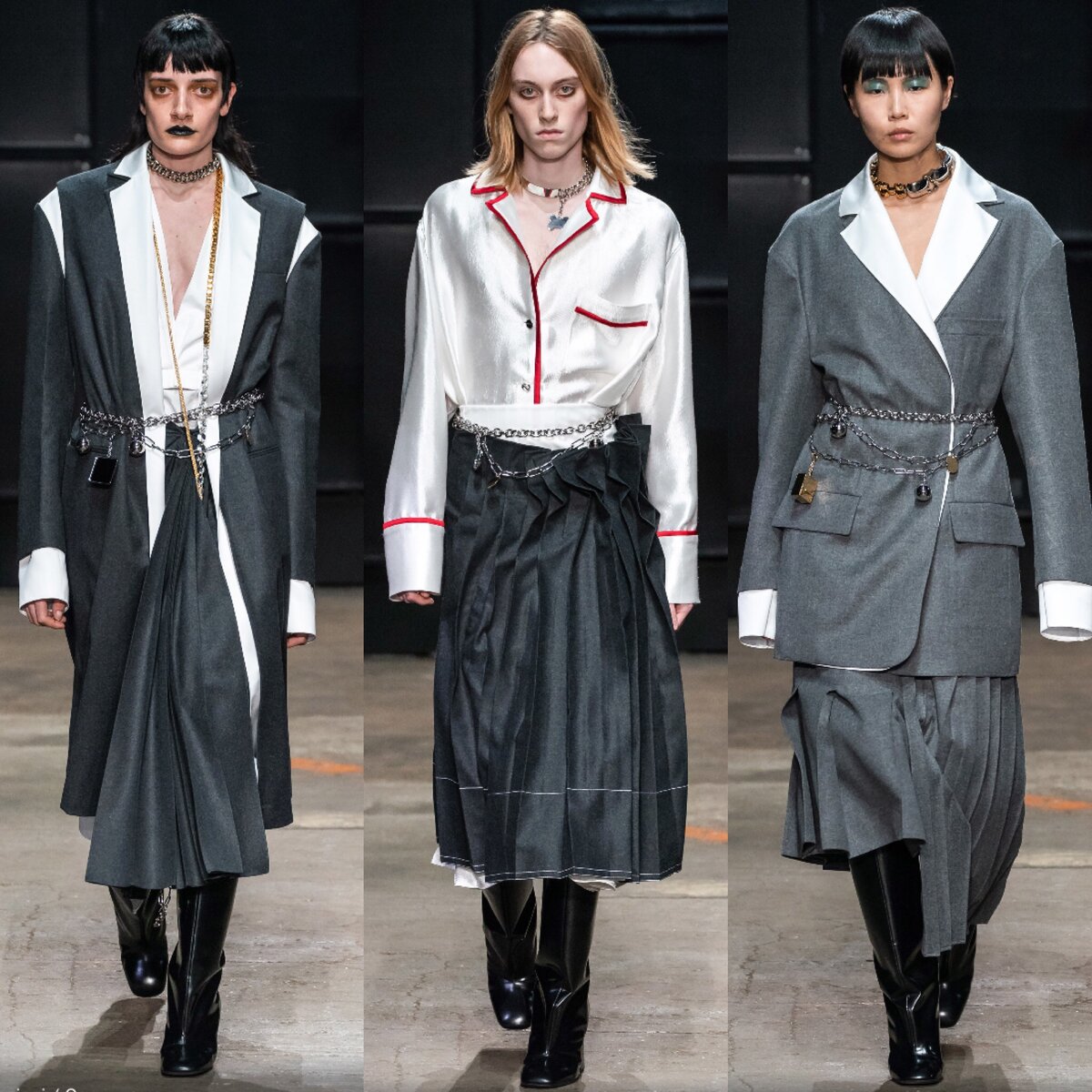 Коллекция Marni Fall’19 RtW безупречно хороша и интересна, но если вы узнаете о движущей ее силе, о концепции, то вряд ли сумеете сопоставить одно с другим. Франческо Риссо назвал свою коллекцию «Нейроэротик»и в этом названии легко угадать суть. Она в том, что современная женщина должна сочетать в себе ум и сексуальность, незатейливо выражаясь. Должна управлять своей сексуальностью, словно биоробот. «Только представьте. - говорит он. - Что стоит лишь приклеить пластырь на колено, и вот у тебя уже новая эрогенная зона вместо соска....» Большего бреда я, если честно, не слышала уже давно. И первый вопрос, который так и напрашивается - Зачем? Зачем тебе эрогенное колено? Сосок на колене зачем тебе??? Лично я за эрогенную пятку - больше толку выйдет. Это, конечно, смешно, но к коллекции не имеет ничего даже близкого. Еще раз повторюсь, она шикарна. И если говорить о ее сексуальности, то она агрессивная и готичная. Резкая и мрачная. А если еще прибавить надорванные рукава, то картин