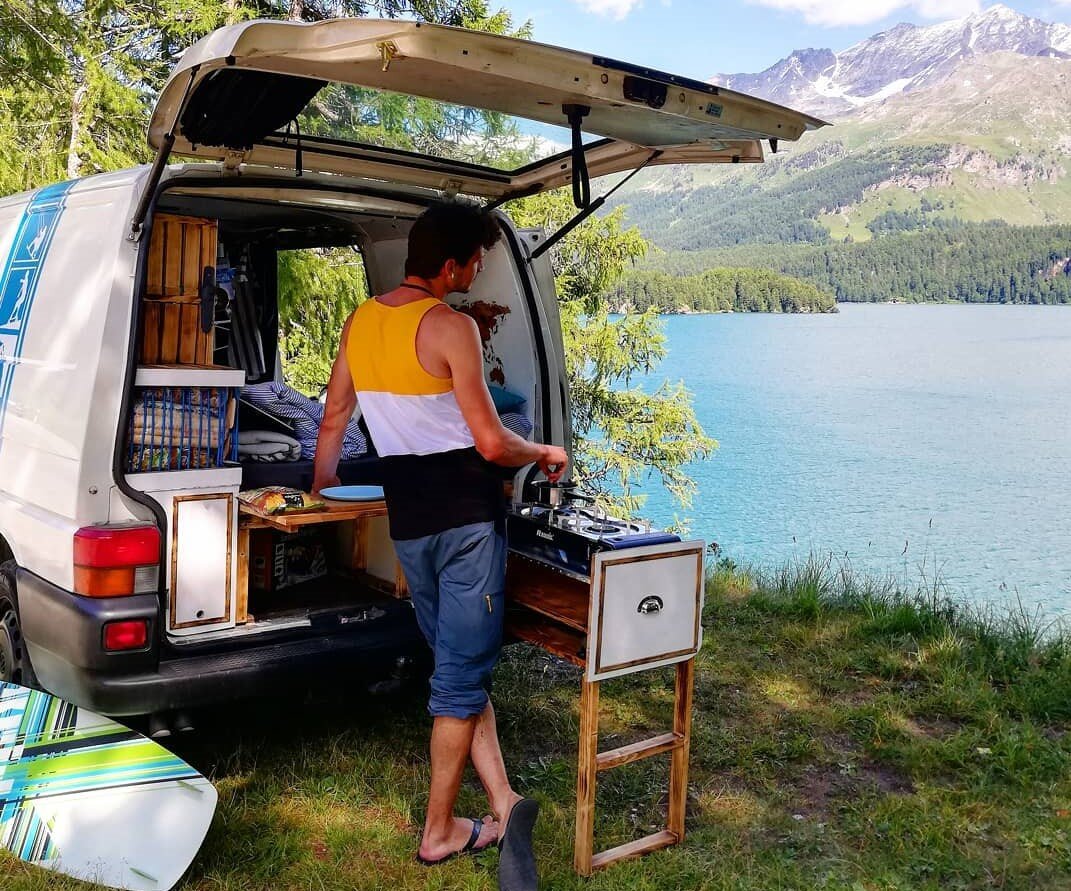 Хелло! Только что придуманная мной рубрика «а так что можно было?» начинается. Ее суть − показать, что жить постоянно или временно можно в транспорте. Сегодняшняя история настоящая находка, у парня немного подписчиков в Инстаграме, но он творит невероятные вещи. В первую очередь статья будет полезна и занимательна тем, кто раздумывает о кемпере как временном жилье для отдыха. В каждом своем посте парень пишет: Цель − путешествовать по Европе на моей машине. Шаг 1. Покупка микроавтобуса Молодой парень решил по-настоящему отдохнуть этим летом. Купить подходящий транспорт удалось со второй попытки. Первое авто − Opel 1977 года не подошел. Второй вариант в виде VW T4 был меньше и оказался идеальным для переделки. Идея: не стоит гнаться за размерами. Хватит и небольшого авто Шаг 2. Превращение в жилье На полную перестройку салона ушло 2 месяца. Всю работы молодой человек делал сам. Благо работать с деревом он умеет. Вся мебель −деревянная. Идея: убрать плиту в полку, поставить стул и раб