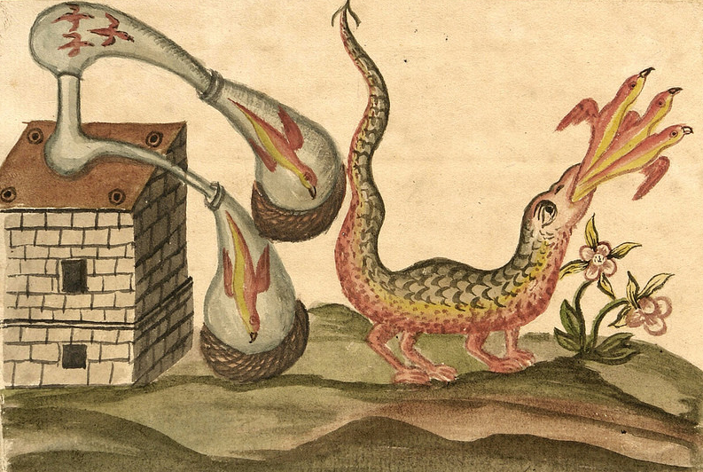 В лабораторной алхимии широко применялись разнообразные сосуды и приспособления. Они служили для разных целей – сублимации, дистилляции, обжига, растворения, хранения нужных ингредиентов и т. д. Сосуды алхимиков часто фигурируют в символических изображениях, а в тексте алхимических трактатов обозначаются специальными знаками. Все сосуды, применявшиеся алхимиками в разные века в одной публикации обсудить не удастся, рассмотрим лишь некоторые из них, самые распространенные. Реторта. Пожалуй, самый известный алхимический сосуд. Знаменитый мыслитель XIII в. Альберт Великий, которому приписывают трактат «Малый алхимический свод» о реторте писал так: «Реторта есть сосуд, который можно помещать в котелок так, как будто бы в гнездо: помещенная в котелок реторта крепко-накрепко и устойчиво располагается в нем. Горлышко, куда подымается вода, отведено в сторону и хорошо закрыто. Реторту следует брать за отвод, а не за дно, иначе она может треснуть. Но вот уже в реторте твоей совсем немного во