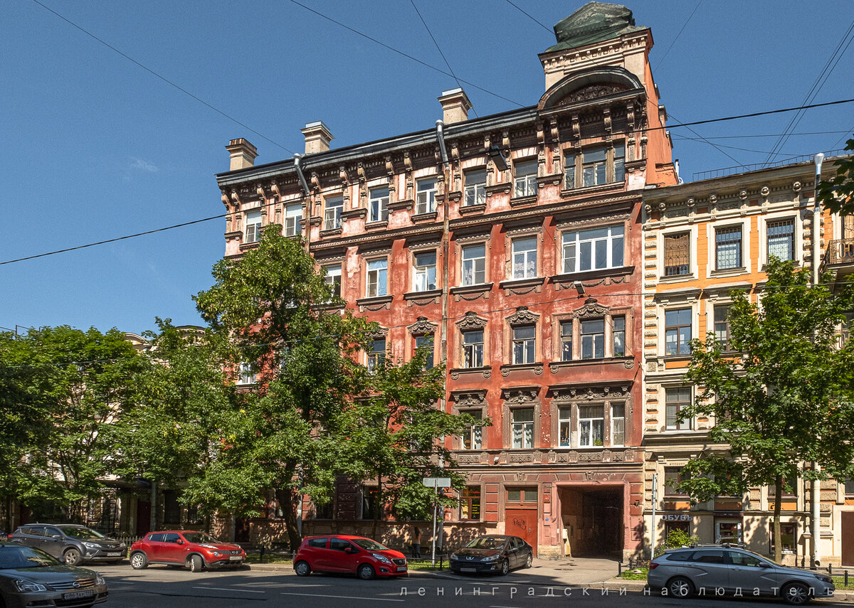 Часто в комментариях к статьям о парадных старых доходных домов, высказывается мнение, что не лучшее состояние некоторых из них связано с наличием в них коммуналок. Не берусь судить, насколько это мнение правильное, но в этой статье речь пойдёт совсем о другой парадной. Но, вначале, немного о том, как рос этот дом. Всё началось с двухэтажного купеческого особняка, построенного в 1833 году. Затем в 1877 и 1898 годах ему надстроили третий и четвертый этажи соответственно. И в 1910 году он стал “пятиэтажкой”. Возможно, поэтому каждый этаж имеет свой декор на фасаде. Войдя в парадную, первое, что обращает на себя внимание, это хорошо сохранившиеся входные двери. На первом этаже, за углом, спряталась бывшая печь. Напротив бывшей печи находится бывший лифт. Красота перил. Лестничная площадка между этажами. Почти не тронутая временем дверь в коммунальную квартиру. Лестничный пролёт и прекрасно сохранившиеся перила. Вид из окна во двор. Последний этаж и сюрприз в виде декора. На все