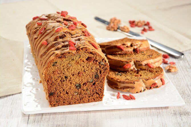 ИНГРЕДИЕНТЫ: Тесто Сливочное масло........................125 гр. Яйца..............................................2 шт. Сахар............................................150 гр. Жидкий мед................................100 гр. Растворимый кофе.....................2 ч. ложки Пшеничная мука.........................2 ст. Пищевая сода................. ............2 ч. ложки Корица..........................................1 ч. ложка Ягоды годжи................................2/3 ст. Нарезанные грецкие орехи......2/3 ст. Глазурь Сахарная пудра..........................100 гр. Растворимый кофе....................1 ч. ложка Ягоды годжи...............................для украшения ПРИГОТОВЛЕНИЕ: 1. Отделяем желтки от белков. Смешиваем муку с содой и