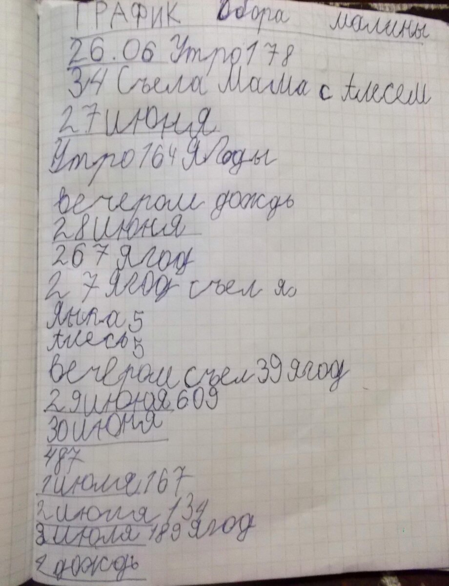3 недели жили на даче. Лес в этом году богат на урожай. Много черники,много земляники, а уж лесной малины-просто тьма.Из грибов застали много лисичек- не собирал их только лентяй.Пару боровиков,много бабок. А на самой даче- малины меньше,чем в прошлом году.Практически все дети съедали прямо с кустов. Часть заморозили. Потом началисьдожди и малина гнила на кустах. Меньше,чем в прошлом году и черной смородины.А красной как всегда много) В этом году Адриан вел график сбора малины, поэтому можем оценить масштабы урожая.