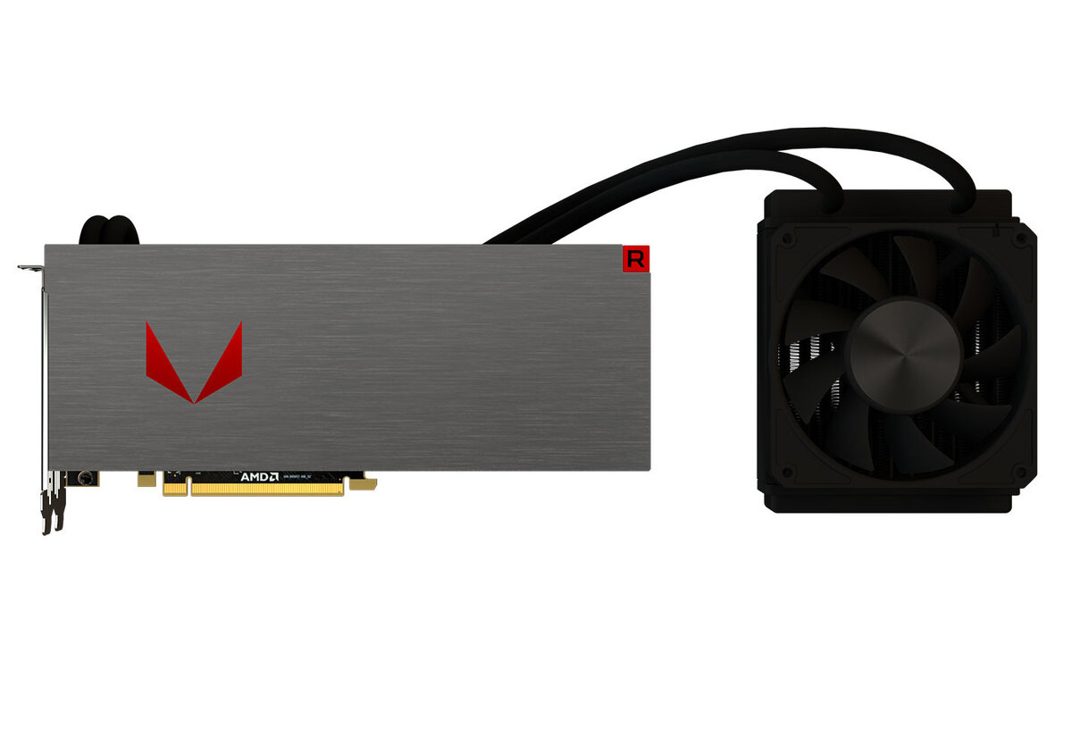 Устройство обладает небольшим объемом памяти HBM2 — всего 8 Гб при пропускной способности в 484 Гб/с. Правда, такой формат памяти может использоваться как кэш, задействуя оперативную память подключенного компьютера. К тому же набор портов позволяет подключить до четырех мониторов сразу: имеется три DisplayPort и один HDMI.