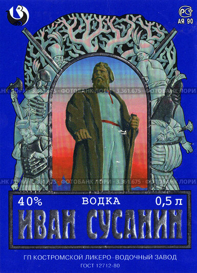 Было это сразу после распада СССР... Неплохое начало? Рассказали мне эту историю про костромчанина, у которого дочь в своё время вышла замуж за гражданина Польши. Проходит время и шлёт весточку, мол, скоро пополнение и сваты, пользуясь случаем, приглашают в гости. Жена приготовила всё к отъезду с подарками будущему ребёнку, сватам подарки обязательно, чтобы знали, что мы не какие-нибудь там... Хозяйство, скотину на кого оставить? Пусть едут женщины, а я от себя лично отдельный подарок, как мужчина мужчине приготовлю. Сват поймёт. Какой подарок? Ну какой может быть подарок из России! Зашёл в магазин, а там, каких только пёстрых этикеток! Конечно понравилась та, на которой запечатлён известный земляк-герой ИВАН СУСАНИН! Принёс аккуратно в упаковке, ещё завернул. И поехали в Польскую, Народную, Демократическую! Через некоторое время приезжают жена с сестрой и с укоризной спрашивают, мол, ты что же делаешь-то? Ты знаешь какой скандал закатил твой сват? Жених - тот ещё фрукт. Бедная д
