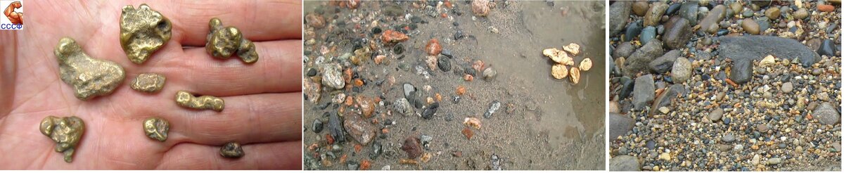Как-то в интернете прочитал, что ”В каждой речке есть золото” И вот однажды Когда я просто загорал на речке и купался, то решил рассмотреть камни, которые везде валяются. На песке их почти не было, и я подошел к воде. На кромке воды было много мелких разноцветных камушков. Я стал их вытаскивать пригоршней и разглядывать со всех сторон. Не прошло и 5 минут И я нашел первый мой камень с содержанием настоящего Золота. На видео видно тонкие желтые блестящие полоски это и есть золото. Этот первый камень оставил себе на память, как сувенир. Интересные публикации для Вас: 1.Мне повезло найти Золотой браслет на пляже. 2.Клад неожиданная находка. Настоящий тайник с сокровищами.