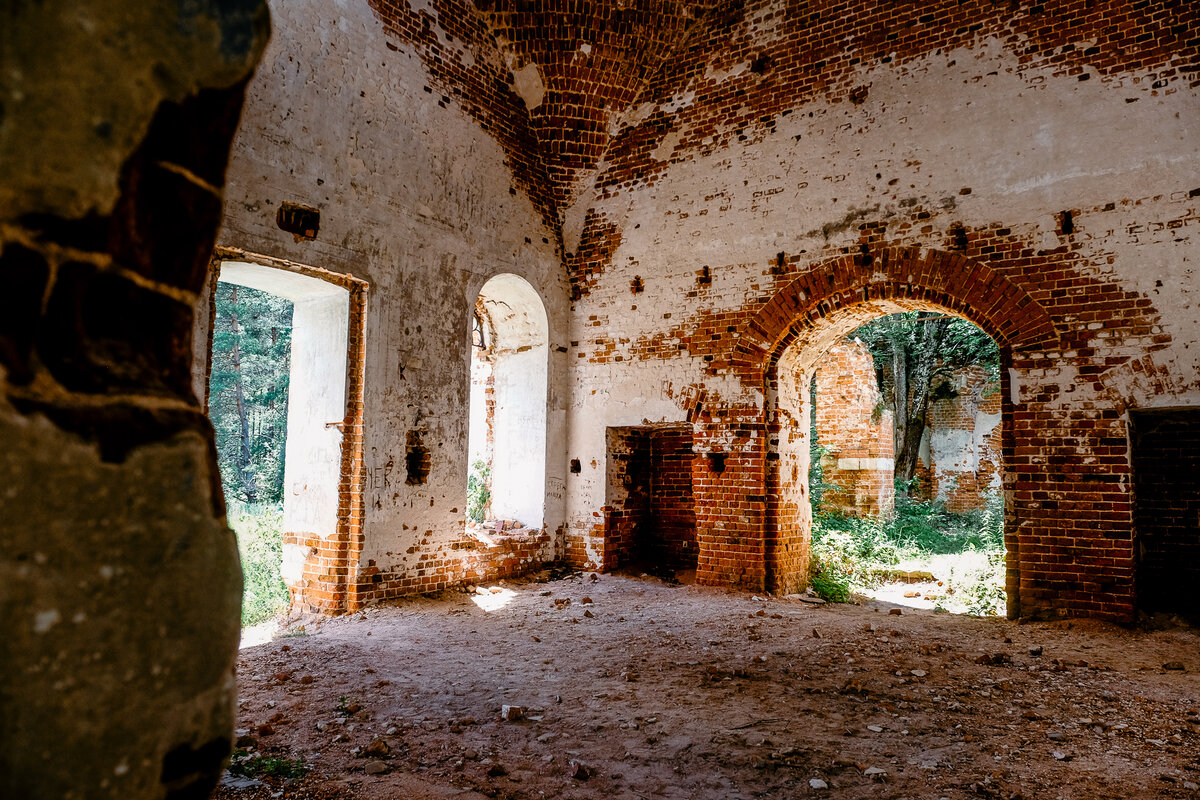 Когда-то здесь проходил Владимирский тракт и была богатая деревня Иколдино - сейчас о ее существовании напоминают лишь остатки каменного храма. Да и от них скоро почти ничего не останется. Чтобы попасть в урочище Иколдино придется пару часов ехать по мещерским лесам. Дорога красивая, но однообразная - сосны, да березы вокруг. После дождя, правда, становится веселее - можно покопаться в грязи пару часиков завязнув в луже... Сейчас деревни уже даже нет на картах. Стоит только деревянный крест. В напоминание о том, что здесь была жизнь. Так же как и в других селах в мещерских лесах. Что еще можно найти в мещерских лесах и болотах? Читайте тут - Нашли удивительную красную реку в лесу Куда же все исчезло? Каменный храм в Иколдино был построен силами местных жителей на средства помещика А.К. Поливанова и хозяина Мишеронского стекольного завода С. Г. Костерева в 1851 году. Тут же была школа. В те времена по Владимирскому тракту движение было очень оживленное и само село было процветающ
