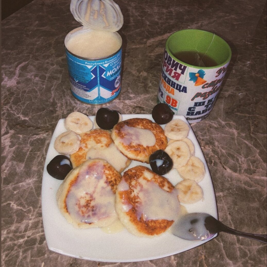 -400г творога (выбирайте помягче, в идеале чтобы был не рассыпчатый) -1 яйцо -2 столовые ложки муки -2 столовые ложки сахара -1 банан Смешиваем ингредиенты и лепим кружочки обмакивая в муку. На разогретую сковороду наливаем маслв, лучше побольше, чтобы наши сырники получились золотистые. Далее жарим каждую сторону по 5 минут на среднем огне. Приятного аппетита!!🤗❤