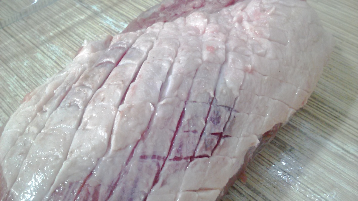 Мясо запеченное в духовке, что может быть вкуснее? Сегодня приготовим очень вкусный и простой в приготовлении рецепт, мой любимый. Для приготовления нам понадобится: Свинина (хребет) - 1,5-2 кг. Соль - 2-3 щепотки Перец черный молотый - по вкусу Масло растительное - 2-3 ст.л. Вода - 1/2 ст. Начнем. Для начала выбираем мясо. Оно должно быть свежее, из замороженного получится сухое. У нас продают на хребет кости. Я обычно беру почечную часть с вырезкой. Вырезку можно использовать в другом рецепте. Обрезаю кости и выравниваю кусок. Сверху оставляю прослойку жира. Надрезаю ее крест-накрест. Она в процессе запекания выжарится и станет очень вкусной. Солю мясо со всех сторон крупной солью. Посыпаю перцем очень обильно со всех сторон . Если Вы любите менее острое, перчите по своему вкусу. Хорошо обмазываю мясо растительным маслом. Делаю это сразу в форме для запекания. Форму отдельно не смазываю. Добавляем в форму 1/2 стакана воды. Разогреваем духовку на максимум. Ставим наше мясо запекаться