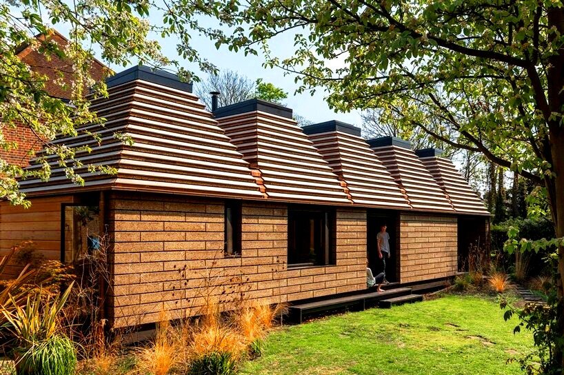 Архитекторы Matthew Barnett Howland With Dido Milne и Oliver Wilton в сотрудничестве с архитектурной школой Bartlett UCL построили дом в Berkshire, Великобритания. Здание с монолитными стенами и изогнутой крышей почти полностью выполнено из цельной пробки. Оно собрано на месте вручную без использования раствора и строительного клея. Конструкция Дом представляет собой простую и устойчивую конструкцию. Она выполнена из единственного биологически возобновляемого материала вместо множества обычных строительных элементов. 1268 блоков пробки могут быть утилизированы в конце срока эксплуатации для повторного использования. Особенности Такой материал создает сенсорную среду, в которой стены приятны на ощупь, а также обеспечивают спокойные акустические условия. Структурная форма дома переосмысливает простые принципы строительства древних каменных сооружений, таких как кельтские улья. Ссылка на статью: https://jborder.ru/design/v-velikobritanii-postroili-dom-iz-1268-blokov-celnoj-probki/ ►Новый