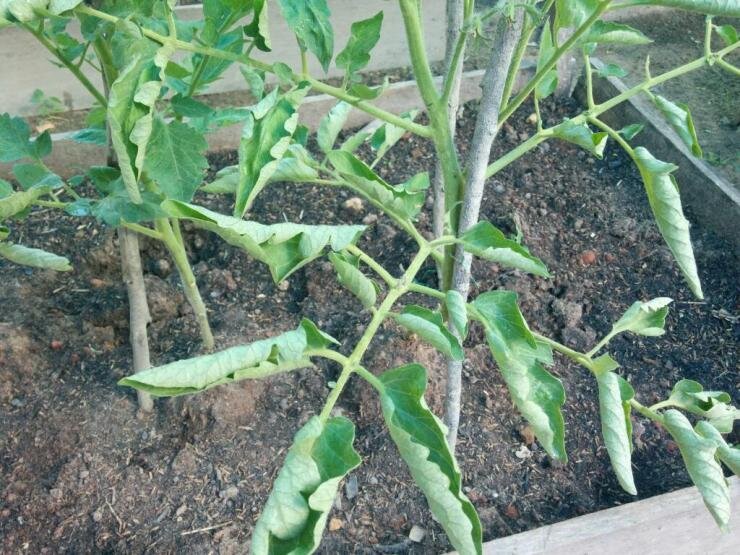 1. Листья томатов скручиваются из-за избытка или недостатка влаги