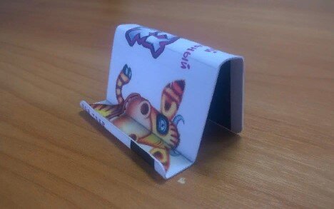 Смартфоны, стали вторым источником общения всего общества. Благодаря новым технологиям смартфоны могут делать фотографии, украшенные различными рамками и передавать их, обмениваться короткими видеороликами и даже смотреть любимые фильмы и программы телевидения. Благодаря такому широкому диапазону их использования, не всегда удобно держать аппарат в руке, особенно в процессе приёма пищи. В таких случаях можно без труда изготовить подставку для своего телефона из подручных домашних средств. Для этого потребуется: Первый вариант (картонная бумага) Данный материал легко можно найти в каждом доме. Если конкретно нет картона, то можно использовать твёрдую бумагу обложки какого–либо журнала. Вырезав из него квадрат 20*20 см сложить его напополам. Тем самым получая две твёрдые половинки бумаги. Сложив их вырезать необходимую форму подставки для смартфона. В основании будет располагаться длинная часть среза листа, в верхней части короткий срез. Тем самым из них получиться «Г – образ» конусной ф