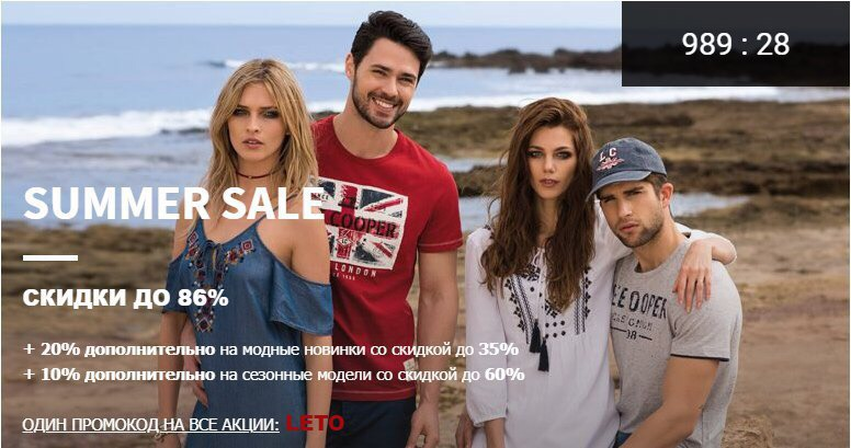 + 10% дополнительной на сезонные модели если основная скидка 35-60% (итоговая скидка до 86%)