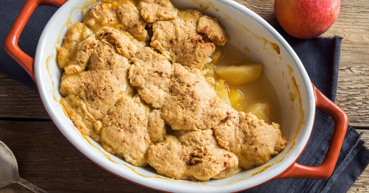 Пушистые, золотые печенье .Этот сладкий летний фаворит . Состав продукта Как это сделать Шаг 1 Нагрейте духовку до 350° F. В миске, бросить персики с ¼ чашки сахара и 2 столовые ложки муки; передача в 8-дюймовый квадратной формы для выпечки. Шаг 2 В кухонном комбайне смешайте оставшуюся 1 ¼ стакана муки и ¼ стакана сахара с маслом, разрыхлителем и солью. Пульс до образования грубой крошки. Добавить сливки и взбивать до полного увлажнения (тесто будет слегка лохматым). Бросьте ложки теста на персики. Шаг 3 Поместите форму для выпечки на противень и выпекать до золотисто-коричневого цвета и пузырьками, от 50 до 60 минут. Подавать с ванильным мороженым.