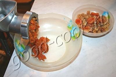 Откинуть на дуршлаг, а затем пропустить через мясорубку. Остудить до комнатной температуры.