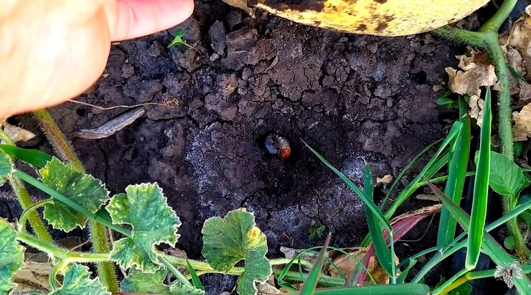 Я снова рад Вас приветствовать на своём канале. Сегодня я продолжу раскрывать тему вредителей на приусадебном участке. А именно, мы поговорим о личинке майского жука. Данная личинка майского жука в простонародии имеет название хрущ. О данном вредителе я уже рассказывал ранее, в конце статьи Вы найдёте ссылку на этот материал. В прошлый раз этот вредитель нанёс вред моей виноградной школке, а в этот раз он добрался до моей бахчи. Я буквально случайно решил проверить, как там идут дела у меня на бахче, и обнаружил вот такой неприятный сюрприз. Если не переворачивать каждую дыню, очень тяжело будет обнаружить данного вредителя. Как Вы можете видеть ниже и выше на фото, личинка майского жука вылезла из земли, сделав своеобразный подкоп под дыней. Дыня получила значительный ущерб в виде прогрызенной дырки в боку. Как правило, данных вредителей Вы привозите на свой участок либо с компостом, либо с навозом. Бороться с данным вредителем довольно сложно, так как преимущественно они обитают по