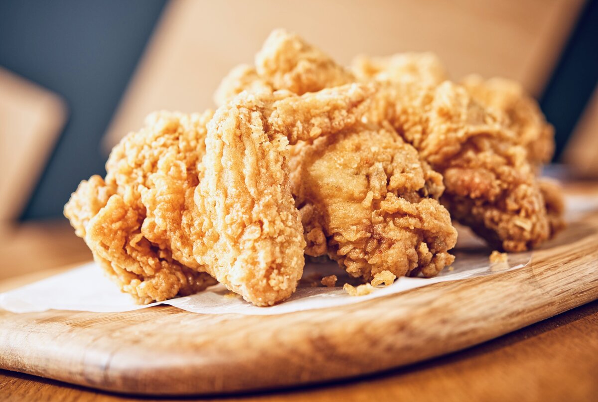 Рецепт прост в приготовлении и очень порадует любителей курочки 😉 Для приготовления нам потребуется: -Куриные крылья-1 уп (10 крыльев) -Чипсы начос или же кукурузные хлопья -350 гр -Яйцо-4 шт -Соль, красный перец -по вкусу -Паприка-15 гр Приступаем к приготовлению : Крылья моем ,протираем бумажными полотенцами и даём полностью обсохнуть. После высыхания солим, перчим паприкой. Взбиваем яйца и приступаем к панировке:измельчаем начос или хлопья в крупную крошку, добавляем соль и молотый красный перец и перемешиваем. Далее наши крылья опускаем в яичную массу,далее обваливаем в панировке , опускаем в предварительно разогретое подсолнечное/фритюрное масло и обжариваем. После обжаривания выкладываем на бумажные полотенца чтобы убрать лишний жир. То же самое проделываем и с остальными крыльями. Крылья идеально сочетаются с соусом BBQ и томатным соусом 😼 Приятного аппетита😉 Понравилась статья? Ставьте 👍🏼 и подписывайтесь ;)