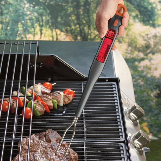 Содержание: Сегодня мы отойдем от привычных нам обзоров смартфонов, планшетов, ноутбуков и других подобных вещей и рассмотрим покупку интересных гаджетов, которые могут немного улучшить нашу жизнь. Итак, поехали! Brookstone Digital Meat Thermometer Компания Brookstone всегда специализировалась на крутых инструментах. Но на сайте мы обнаружили и очень интересные гаджеты. Одним из них является "умная" вилка, позволяющая приготовить еду, а конкретно — мясо. В вилку встроен термометр специально для тех, кто любит вкусное мясо, но не знает, как его приготовить. Перед тем, как начать готовить, на вилке необходимо выбрать тип мяса, а она, в свою очередь, подскажет идеальную температуру для первоклассной прожарки. Работает очень просто: достаточно воткнуть вилку в мясо и следить за индикатором. В зависимости от готовности продукта будет меняться подсветка на дисплее. Стоимость этой забавной штуки на сайте производителя всего 35 долларов. Впрочем, на Amazon можно найти и еще более доступн