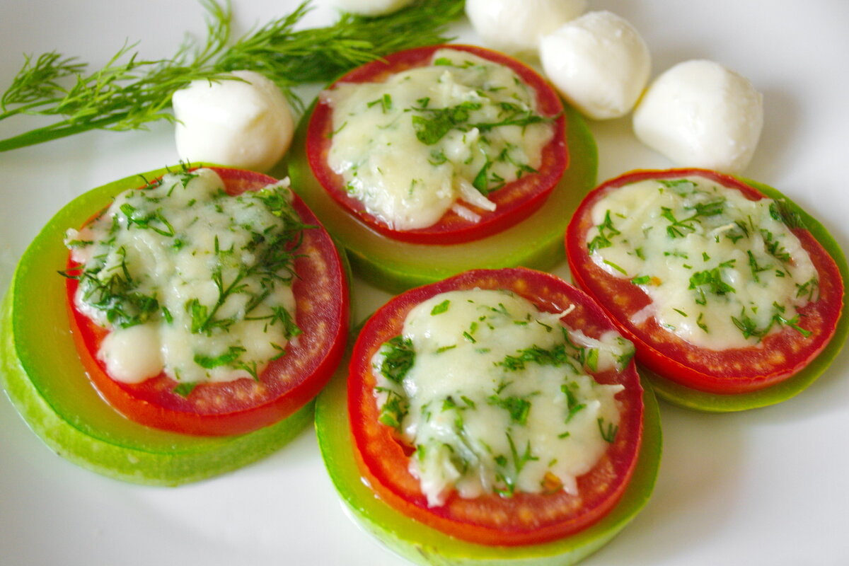 Привет, друзья! :) Продолжаю изучать рецепты с овощами. Решил пока сделать небольшой перерыв в мясе и сосредоточиться на овощах - лето же, тяжелую пищу не хочется есть. А овощи - вроде даже полезно. Тем более, что сезон. Эта закуска, я уверен, очень широко распространена. Но с учетом, что с овощными блюдами я стал близко знакомиться после 30 лет неведения, многие такие рецепты до сих пор в диковину. А они, что для меня, северянина, удивительно, бывают не хуже мясных блюд :) Спасибо за ваши лайки и репосты - это очень помогает журналу. Нам понадобится: Молодые кабачки Помидоры Сыр рассольный (моцарелла, сулугуни, брынза) Чеснок Соль Свежая зелень Как готовить: Крайне просто. Кабачки порезать кольцами шириной примерно в сантиметр и отварить в течение двух минут. Измельченные сыр, зелень и чеснок смешать вместе. Чеснока берите совсем немного, чтобы он не перебил остальные ароматы. Лучше пропустите его через чеснокодавилку. Обсушенные дольки кабачка слегка посолите (иначе будет не так вк