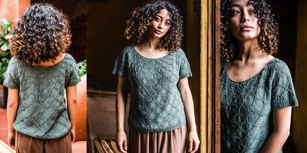 Бесшовный топ вяжется сверху вниз круговыми рядами. В готовом топе лицевая сторона работы будет изнанкой. Кромки выполнены резинкой 1 лицевая/ 1 изнаночная.