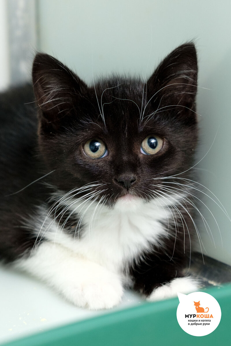 Что могло заинтересовать спокойную двухмесячную малышку так, что она бросилась со всех лап перебегать 8-полосное скоростное шоссе? Задумчивый взгляд немного печальных глаз Малютки нам говорит о том, что это вряд ли была задорная птичка или былинка-дразнилка на ветру. Скорее всего, ей показалось, что ее позвала мама или добрый человек. Отважная кошечка родилась в рубашке! Она не погибла страшной смертью под колёсами, ее поймали в потоке машин и доставили в приют "Муркоша". Здесь Малютка немного осторожничает в незнакомой обстановке, но с любопытством оглядывает окружающих. С интересом юная кошечка обнаружила, что она ещё и красавица: эффектные белые усы и вибриссы на чёрной мордашке, шикарная плюшевая шубка, белая полумасочка, манишка и носочки. Малютка покорила Вас? Приходите в гости! Возраст – 2 месяца, привита по возрасту, есть чип и ветпаспорт, приучена к лотку и когтеточке. Помимо информационной поддержки мы обещаем будущим хозяевам помочь со стерилизацией кошечки по самым выго