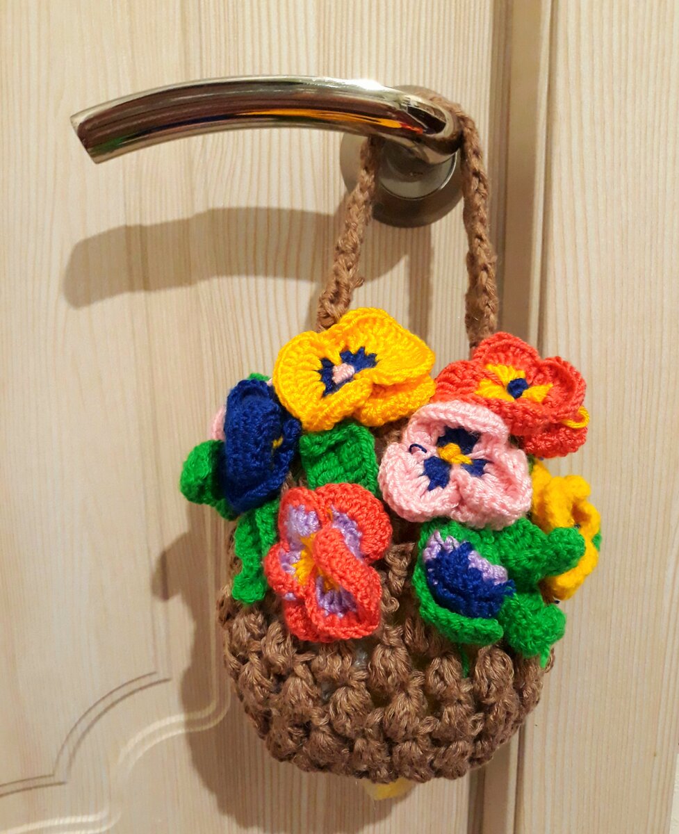 Для украшения нашей корзинки мы будем вязать анютины глазки.