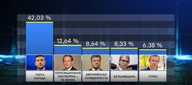 Закончились очередные украинские выборы. Пять лет назад Украина под гипнозом избрала патриотов с нацистской ориентацией во главе с Порошенко, которые в результате оказались плохими. Теперь процесс пошел в обратном направлении – состав депутатского корпуса изменился процентов на семьдесят. По итогу: партия президента Зеленского «Слуга народа» набирает 43,10% голосов, второе место занимает «Оппозиционная платформа — За жизнь» (12,94%). В Раду также попадают «Европейская солидарность» (8,18% голосов), «Батькивщина» (8,18%) и фракция «Голос» (5,92%), сообщает ЦИК. Явка на досрочных выборах немного превысила 49%. Итоги выборов обнародуют до 5 августа 2019 года. Подводим итоги: украинцы большинством голосов выбрали себе «слугу народа» Зеленского, который на словах пропагандирует, что-то среднее между программой Порошенко и Медведчука, у которого даже нет внятной программы, одни спецэффекты и ролики в соцсетях По предварительным данным СН получит 124 места в Раде. Для парламентского больш