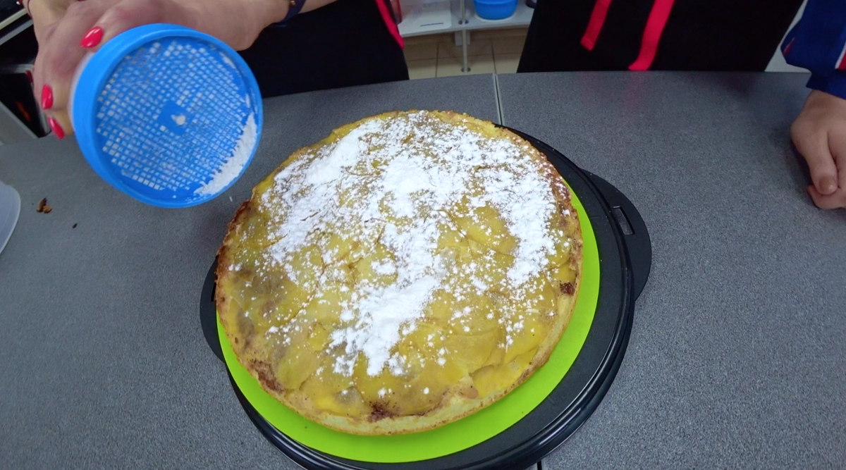 ►4 яйца ►200 гр.сахара ►4 ст.ложки муки ►яблоко ►корица ⋄желток смешать с сахаром ⋄белок взбить ⋄аккуратно соединить желток и белок ⋄добавить муки ⋄перемешать ⋄Яблоки уложить на дно и посыпать корицей ⋄Выливаем тесто в форму на яблоки ⋄Выпекаем при 180 градусах 10-15 минут ⋄После отключения духовки даем еще постоять немного Приятного аппетита! А вот и видео, как мы готовили бисквит. А точнее Непутевая хозяйка училась готовить бисквит.