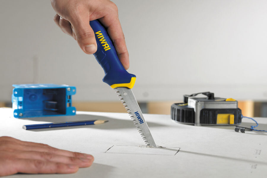 Всем известно, что гипсокартон имеет форму больших прямоугольных плит, которые можно использовать для закрытия поверхностей определенного размера. Однако, если нужно закрывать небольшие участки или сделать заготовку сложной конфигурации, то вам непременно придется резать гипсокартон одним из имеющихся способов. А именно – резка монтажным ножом, резка ножовкой, а также при помощи электролобзика. О этих способах сейчас и поговорим. Техника резки монтажным ножом Монтажный нож является незаменимым во время подготовки длинных кусков гипсокартона. Перед тем, как нарезать на подготовленную пластину материала необходимо нанести разметку, а после этого по линии отреза укладывается линейка. Затем острием ножа по намеченной линии точно и аккуратно делается надрез тела картона, но только на небольшую глубину. Приготовленную подобным образом плиту немного нужно сместить на столе таким образом, чтобы линия резки была на 1-2 см дальше края стола и легким надавливанием или постукиванием по к