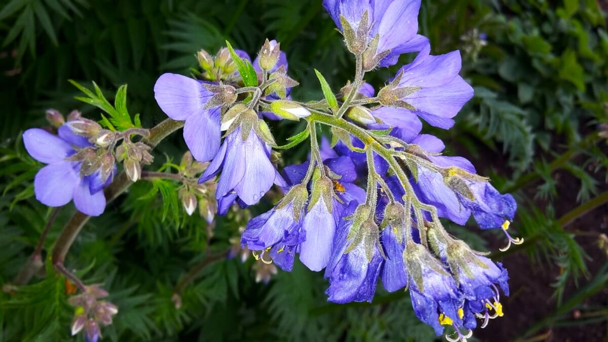 Всходить синюха начинает в начале июня, выбрасывая свои резные листья, по форме похожие на лист рябины, только меньше по размеру. Затем выбрасывает очень длинные стебли, на концах которых появляются рядами симпатичные фиолетовые цветочки как маленькие-маленькие колокольчики. Эти колокольчики как бы зависают в воздухе и так как из далека компактные стройные стебли синюхи практически не видны. От дуновения ветерка колокольчики перемещаются то в одну то в другую сторону, повторяя движения за направлением ветра. Не смотря на то, что кустик достаточно высокий около 70-80см., он очень компактный. Высаживать его лучше подальше от бордюров и дорожек, впереди располагая перед ним низкорослые растения. В уходе синюха очень не требовательна, хорошо зимует. Легко размножается делением куста с комом земли. Лучше располагать на солнечных участках, так как там она развивается и зацветает быстрее, чем в тени. К влаге не требовательна. Удобно высаживать рядом с растениями, которые обладают мощной зе