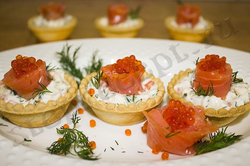 6. Распределяем начинку по тарталеткам и декорируем листиками петрушки либо мяты.