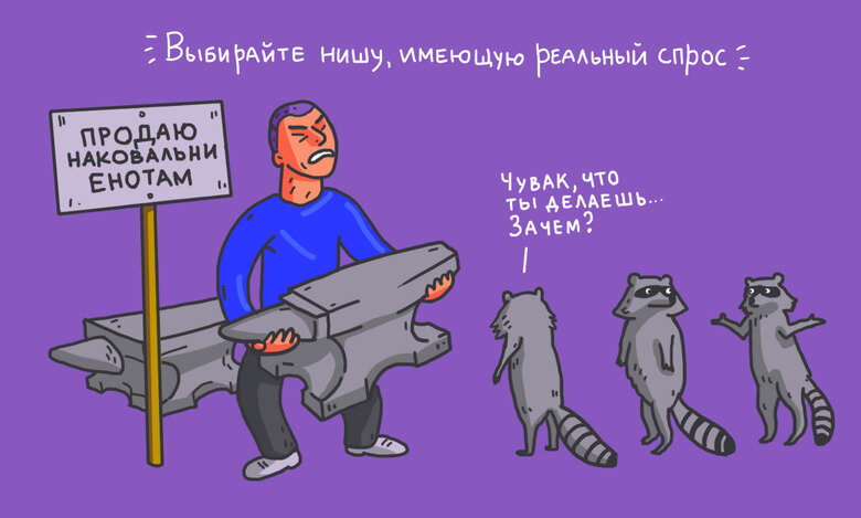 Этот анекдот ярко характеризует второй сценарий, когда мы выбираем бизнес по принципу «такого ещё нет в моём городе, нет в России, я буду первым!» Всегда задавайте себе вопрос: «А по какой причине такого ещё нет?» Может быть, потому что вы первый догадались? Приятно так думать, но скорее всего это просто никому не нужно. Это не значит, что сфера инноваций теперь для нас закрыта, это лишь означает, что без опыта в бизнесе поднять и раскрутить инновацию вам будет гораздо сложнее. Поэтому мы всегда советуем на начальном этапе выбирать ниши с уже существующим спросом.