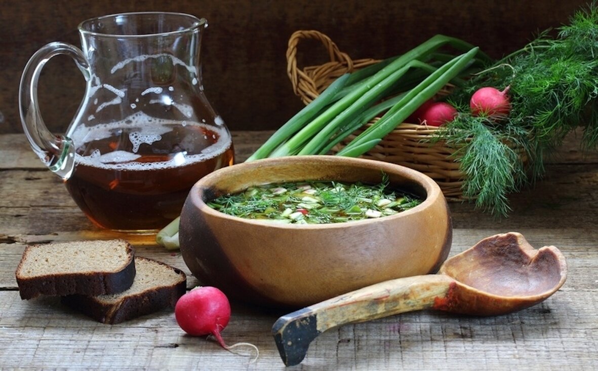 Здравствуйте, дорогие подписчики! Кто не любит окрошку? Честно признайтесь, есть среди нас такие? Конечно, и среди правил есть исключение. Рецепты окрошки появились ещё на заре русской кулинарной литературы, в конце XVIII века — в частности, в труде Николая Осипова «Старинная русская хозяйка, ключница и стряпуха». Само слово «окрошка» происходит от глагола крошить. Собственно, покрошить можно все, что попадется под руку и залить хоть квасом, хоть кефиром. Или даже просто водой. В близкой родне у окрошки числится ботвинья. Из самого названия понятно, что готовится она из листьев, предварительно сваренных и протёртых. Все, что растет в огороде, сгодится для этого блюда: щавель, свекольная ботва, шпинат, зелёный лук, крапива. Ботвинья, в отличие от окрошки, является более легким блюдом, заливается квасом и к ней принято подавать рыбу. Рецептов этих блюд очень много, пожалуй, каждая хозяйка может поделиться своим собственным. Я же хочу поделиться с вами оригинальным рецептом уральской ок