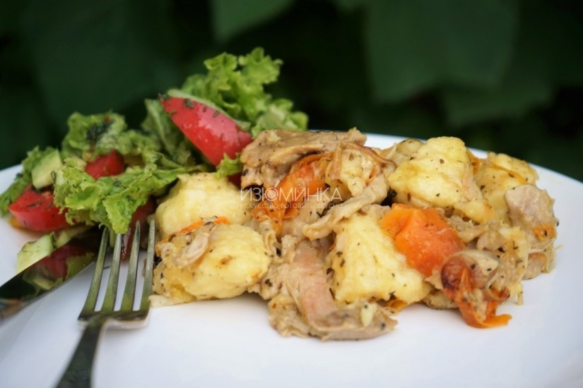 Галушки с курицей - это про любовь к украинской кухне: такой вот настоящей, простой, не высокой, но очень искренней и вкусной. Самая обычная еда, самая простая и доступная. У этого блюда есть несколько "фишек", которые превращают его в нереально крутой ужин. Первое - овощи. Их много. Благодаря тому, что их много, еда не тяжелая для желудка, ее вообще хочется есть и не останавливаться. Второе - мясо. И третье - многие при приготовлении теста для галушек берут больше муки: масса получается более плотной, галушки соответственно - лучше оформленными, одинаковыми и почти правильной формы. Дело вкуса. Эти же галушки такие мягкие и нежные, что тают на языке, практически не нуждаются в пережевывании. Как приготовить галушки с курицей? Ингредиенты: 1 кг куриного мяса (бедра, голени, крылья, грудка); 3 луковицы; 2 моркови; 1 стакан кефира; 1 яйцо; 2/3 ч. л. соды; 2-2,5 стакана муки; соль, перец, растительное масло по вкусу. Инструкция Подробный пошаговый рецепт с фотографиями можно посмотре