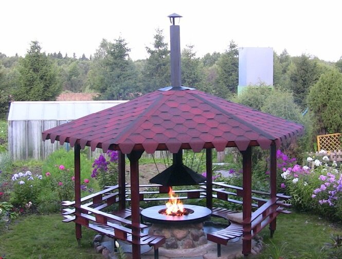 При сооружении беседки важно уделить внимание ее крыше. Ведь от крыши в первую очередь зависит внешний вид и стиль беседки. Кроме того, кровля должна быть надежной и выполнять свое основное предназначение – защищать от атмосферных осадков и жаркого солнцепека. Данным требованиям вполне отвечает черепица. Черепица для беседки в последнее время чаще всего используется в качестве кровельного материала. Но черепица производится разных видов. Перечислим их. Какой же из данных видов лучше всего подойдет для беседки? Кратко рассмотрим особенности каждого вида. Черепица для беседки, прежде всего, не должна быть тяжелой. Натуральные черепки из глины и цементно-песчаной смеси не отвечают этому требованию в полной мере – они довольно тяжелы. Поэтому их лучше применять при большой, основательной конструкции каркаса беседки. Битумные и металлические аналоги легче других видов, в данном аспекте они более подходящий материал. Наибольшей механической прочностью обладает битумная черепица. Немного отс