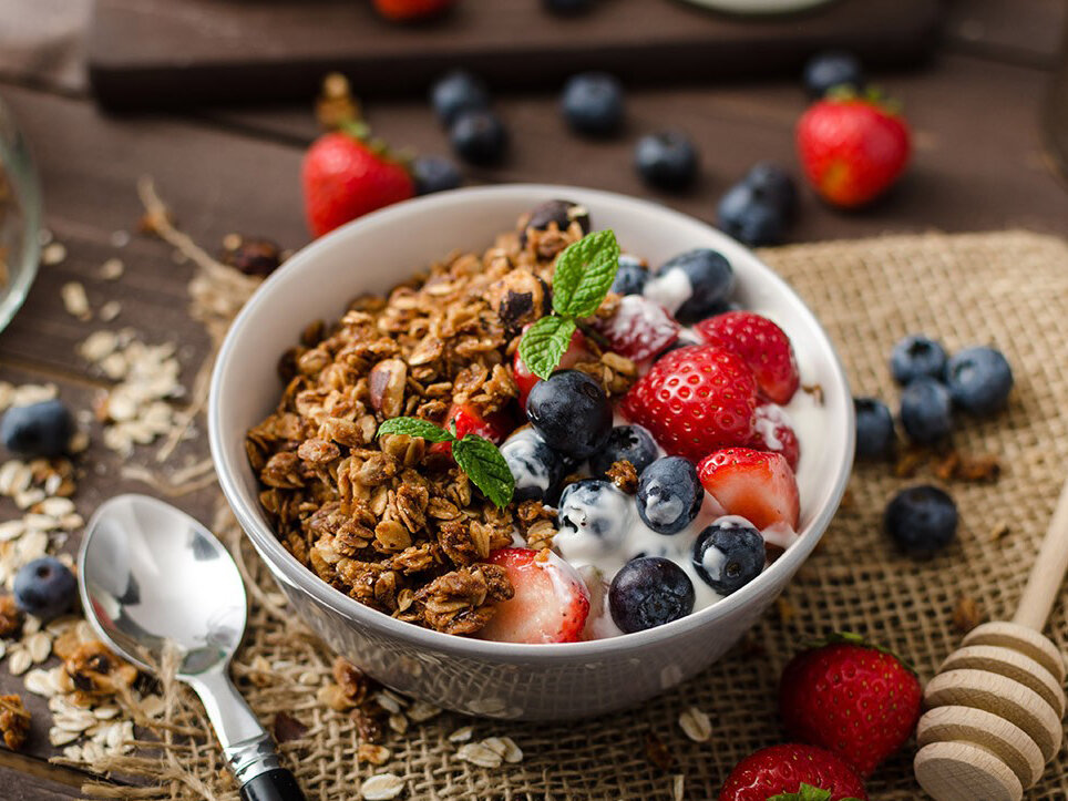 Гранола из магазина обычно отличается изобилием добавленного сахара, а жаль, ведь она обладает огромным потенциалом в поддержке здоровья микрофлоры. Этот рецепт сохраняет все необходимые пищевые волокна, но удаляет значительную часть сахара. Чтобы разнообразить блюдо в течение года, мы добавляем в него сезонные фрукты.