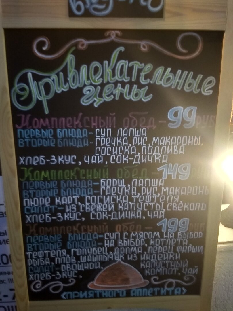 Приветствую вас дорогие читатели. В данный момент мы находимся в солнечной Анапе. И хотелось бы рассказать вам про места питания. А именно столовой Островок где нам предлагают комплексный обед за 99 рублей. Начну с того, что есть 3 вида обеда за 99, 149 и 199 рублей. Отличаются они разнообразием и количеством блюд. Мы же рассмотрим обед за 99 рублей. За эти деньги нам предлагают суп лапшу, макароны или гречку с сосиской, компот и хлеб. В целом набор неплохой, есть как дополнительные пакетики солью и перцем и выбор между одноразовой или стальной посудой. Сами блюда как раз столовского уровня , все кроме самой сосиски. Она очень не вкусная и кажется что сделана из бумаги. Но за такие деньги грех жаловаться, ведь по отдельности выходит сумма около 170 рублей. Место хорошее для тех кто экономит и наесться вполне возможно. В целом вполне даже вкусно так что рекомендую это место. А вам желаю удачи и до скорых встреч на канале)