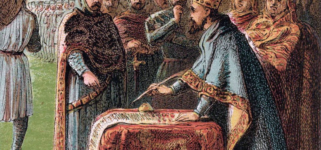 Конфликт с церковью продолжался в течение пяти лет. За это время Иоанн накопил более 100000 фунтов стерлингов за счет доходов от присвоенных духовных постов. Но, хотя разрыв был выгодным в денежном отношении, он угрожал планам Иоанна по возвращению своих земель в Европе, а также наносил ущерб его престижу в своей собственной стране. В ноябре 1212 Иоанн согласился принять Лэнгтона и все условия Папы. Он отказался от своего королевства в пользу папского нунция и получил его обратно уже как вассал Папы, согласившись выплачивать ежегодную дань в 1000 марок. Летом 1213 Лэнгтон снял с Иоанна отлучение от церкви и в 1214 году интердикт на Англию был отменен. Примирение Иоанна с Иннокентием обеспечило Иоанну союзника в лице Папы Римского в его конфликте с Филиппом II Августом, но его ущемление церкви возмущало монастырских летописцев, которые в своих трудах обвиняли его в святотатстве, а также тирании и жестокости. Его запланированное вторжение во Францию не привело ни к каким решающим победам, и Иоанн был вынужден принять перемирие, которое продлилось до его смерти. Вслед за этим вторым неблагоприятным результатом во Франции, возвращение Иоанна в Англию не было счастливым. Бароны, никогда особенно не любившие Иоанна, выразили еще большее недовольство, и в 1215 году вспыхнула гражданская война. Когда Лондон перешел на сторону мятежников, Иоанн был вынужден пойти на переговоры. 15 июня 1215 года на лугу Раннимид на берегу Темзы недалеко от Виндзорского замка он принял условия, изложенные в документе, известном как Статьи баронов. Этот документ в течение ближайших нескольких дней был пересмотрен, пока и Иоанн и бароны не приняли зафиксированные в нем положения. В дальнейшем документ стал известен как Великая хартия вольностей (Magna Carta или The Great Charter). Иоанн почти сразу же обжаловал харию у Папы, который встал на сторону короля, и последовала еще одна гражданская война. Иоанн захватил Рочестерский замок, опустошил северные графства и земли на шотландской границе. Но в Англию по просьбе баронов вторгся французский принц Луи (впоследствии Людовик VIII). Иоанн сражался до самой смерти в октябре 1216. Его смерть проложила путь к миру; мятежники были восстановлены в правах, сын Иоанна Генрих был признан наследником, и Луи вывел свои войска.
