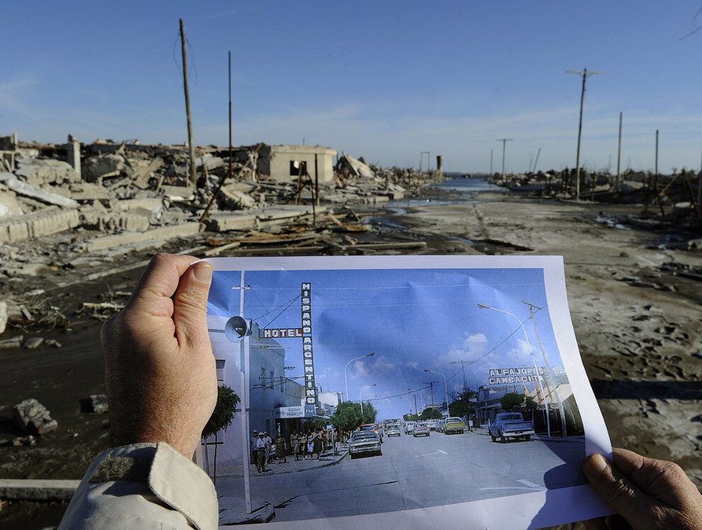 Вилья-Эпекуэн – некогда знаменитый город-курорт в Аргентине. Именно сюда стекалось население со всего мира, чтобы излечить большинство болезней. Озеро на территории курорта содержало в своем составе соли, которые в 10 раз превышали концентрацию среди остальных соленых озер. Со временем появилась железная дорога, магазины, музеи, и Вилья-Эпекуэн стал самым посещаемым курортом в мире. С расширением территории курорта, возникли проблемы с пресной водой, и количество туристов за сезон стало значительно снижаться. Тогда местные власти построили огромный резервуар для опреснения воды и очищения ее от соли и тяжелых металлов. Но население городка увеличивалось, как и количество туристов, и снова возникла нехватка питьевой воды. Тогда специалисты пошли на крайние меры и расширили резервуар с опресненной водой. Однако расчеты оказались неверными, резервуар не выдержал, и вся вода хлынула на город, затопив под собой целый городок. Наводнение на озере также вызвали бесконечные проливные дожди. С